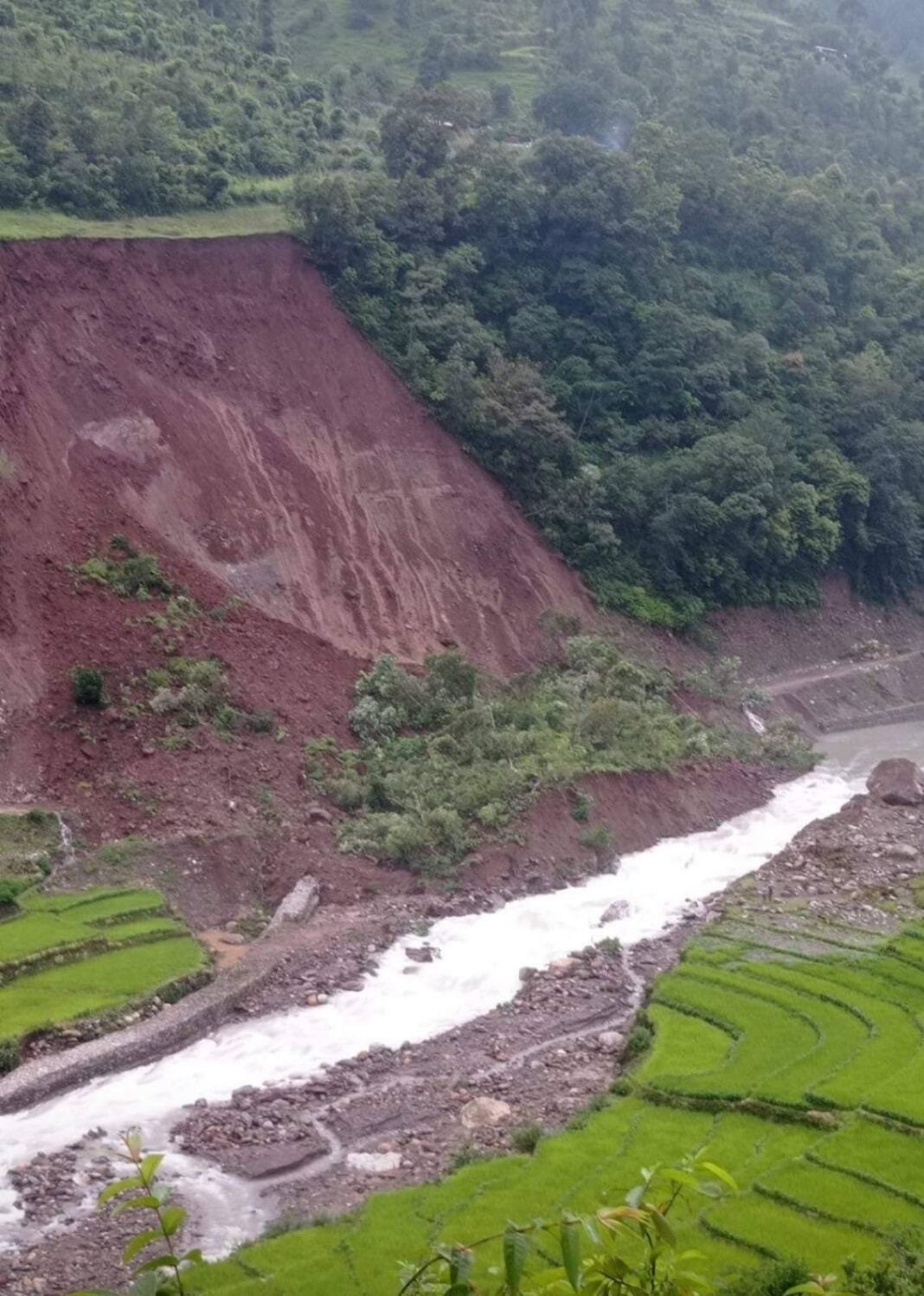 पहिरोले थुनिएको भुजिखोलाले आफनो गति लियो , ढोरपाटन सडक खण्ड अवरुद्ध