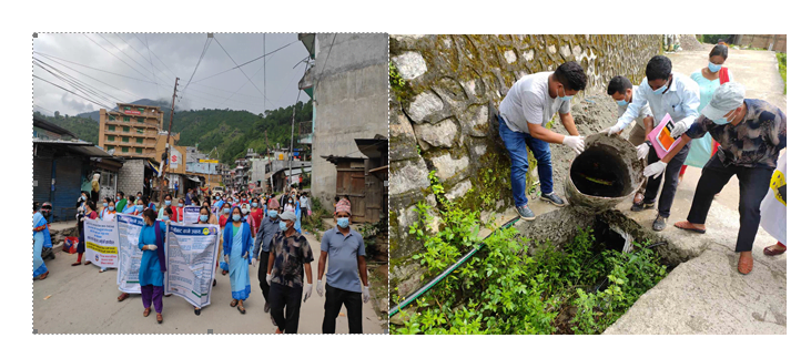 ढोरपाटन नगरपालिका प्रमुख प्रशासकिय अधिकृत विष्णु प्रसाद ज्ञवाली, जनप्रतिनिधी, समाजसेवी टंक प्रसाद पौडेल, पत्रकार, स्वास्थ्य कर्मी, स्वास्थ्य महिला समुह, कर्मचारी लगाएतको उपश्थितीमा बुर्तिबाङ बजारमा सचेतना मुलक कार्यक्रम संगै बजार क्षेत्रमा लामो समयदेखि पानी जमेका टायर, वाल्टी, ड्रम, तथा खाल्डा खुल्डीको पानी फालेर अभियानको सुरुवात गरीएको हो । अव निरन्तर वडाको सक्रियतामा बजार सरसफाई गरीने वडा अध्यक्ष वान बहादुर छन्त्यालले बताउनु भयो । कार्यक्रम ढोरपाटन नगरपालिका स्वास्थ्य सम्योजक केशव थापाले सञ्चालन गर्नुभएको हो ।