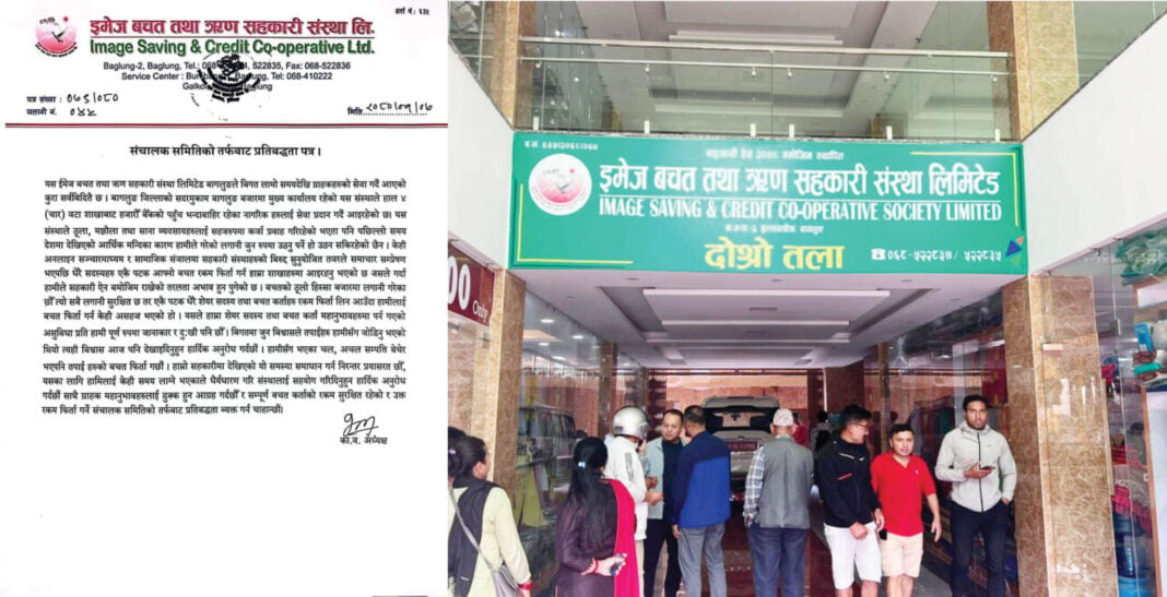 गत पुसमा भएको साधारणसभामा इमेजले सहभागी सेयर सदस्य र बचतकर्तालाई प्रतिवेदनसमेत दिएको थिएन । संस्थाको पदाधिकारीबारे अधिकांशले जानकारी नपाएको गुनासो गरे । ‘साधारणसभामा बोलाएर गयौं, तर पदाधिकारी पनि चिनिएन, आर्थिक प्रतिवेदन पनि बताइएन,’ एक बचतकर्ताले भने, ‘यस्तो अवस्था हुने रहेछ त्यसैले कुरा लुकाइएको होला ।’ सहकारीले १८ प्रतिशत ब्याज दिने भन्दै बचतकर्ताको रकम संकलन गरेको थियो । अध्यक्ष नेपालीले पोखरा, बागलुङ, बुर्तिवाङ र काठमाडौंमा बनाएका घरमा सहकारीको लगानी भएकोले नगद अभाव भएको हुन सक्ने अनुमान गरिएको छ ।