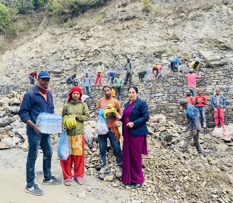 वडिगाड गाउँपालिका अध्यक्ष गण्डकी थापाद्धारा श्रमिकलाई फलफुल वितरण