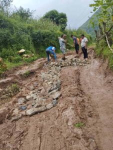 ठेकेदारले काम नगरेपछि गैति बेल्चा लियर बाटो बनाउन उत्रिय ढोरपाटनका का.वा. मेयर