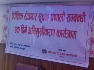 बागलुङ जिल्ला स्थित स्थानीय पालिकाका रोजगार संयोजक र रोजगार सहायकका निम्ती एक दिने बैदेशिक रोजगार सुचना प्रणाली सम्बन्धी अभिमुखिकरण कार्यक्रम बुर्तिबाङमा मँगलबार सम्पन्न भएको छ ।