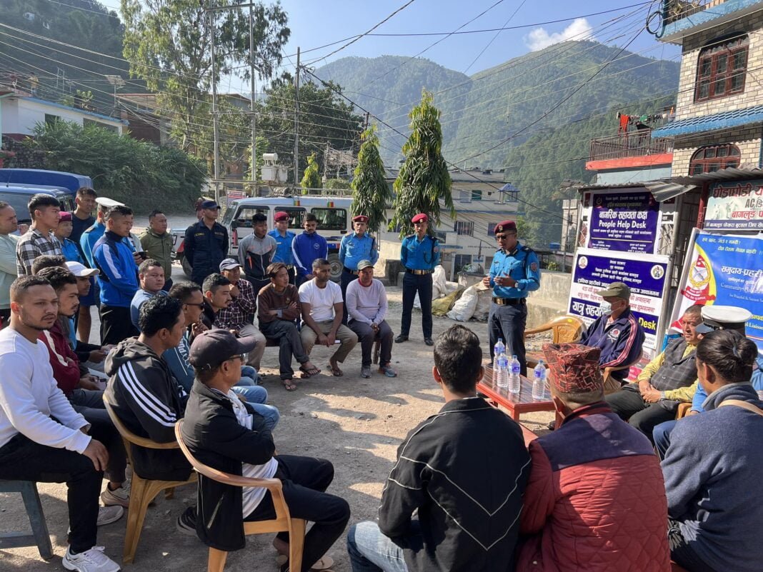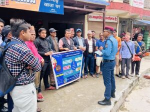 विगत केहि समयदेखि लघु सचेतना कार्यक्रम गरिरहेको प्रहरीले नागरिकलाई टोल, वस्ति, सडक लगाएतका क्षेत्रमा भेटेर उनिहरुलाई महिला हिँसा न्युनिकरण, आत्महत्या न्युनिकरण,लागु औषध तथा दुब्र्यशनी विरुद्धको अभियान लगाएतमा थप सचेत बनाउँदै सचेतना गर्ने गरिएको हो ।