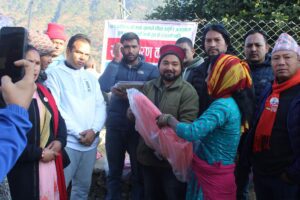 त्यस्तै अर्का माननिय दिलमाया पौवीले पिडामा रहेका नागरिकलाई थारै भएपनी राहात मार्फत मल्हम लगाउन भुकम्प प्रभावित क्षेत्रमा आएको बताउनु भयो । दुई माननीय सहितको टोली राहात लिएर दुर्गम गाउँमा पुग्दै गर्दा स्थानीय नागरिक खुसि भएका छन । एकसय बोरा चामल एकसय थान त्रिपाल, चाउचाउ, विस्कुट लगाएतका खाध्यान्ह सामाग्रि उपलब्ध गराईएको हो । आफुहरुबाटै आर्थिक संकलन गरेर राहात हस्तान्त्रण गरिएको हो