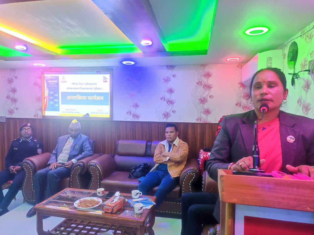 १६ दिने लैंङ्गिक हिंसा विरुद्धको अभियान अन्र्तगत इलाका प्रहरी कार्यालय बुर्तिबाङले आयोजना गरेको अन्र्तक्रृया कार्यक्रममा प्रमुख अतिथीको रुपमा बोल्दै सांसद पौवीले पछिल्लो समय मानिस शिक्षित हुँदै गर्दा झनै लैंङ्गिक हिंसाका घटनामा बृद्धि भएको बताउँदै शिक्षित भएर मात्र नहुने बरु मानसिक रुपमानै अरुप्रति गरिने हिंसा आफैबाट अन्त्य गर्न सकेमात्रै लैंङ्गिक हिंसाको अन्त्य हुने बताउनु भयो ।