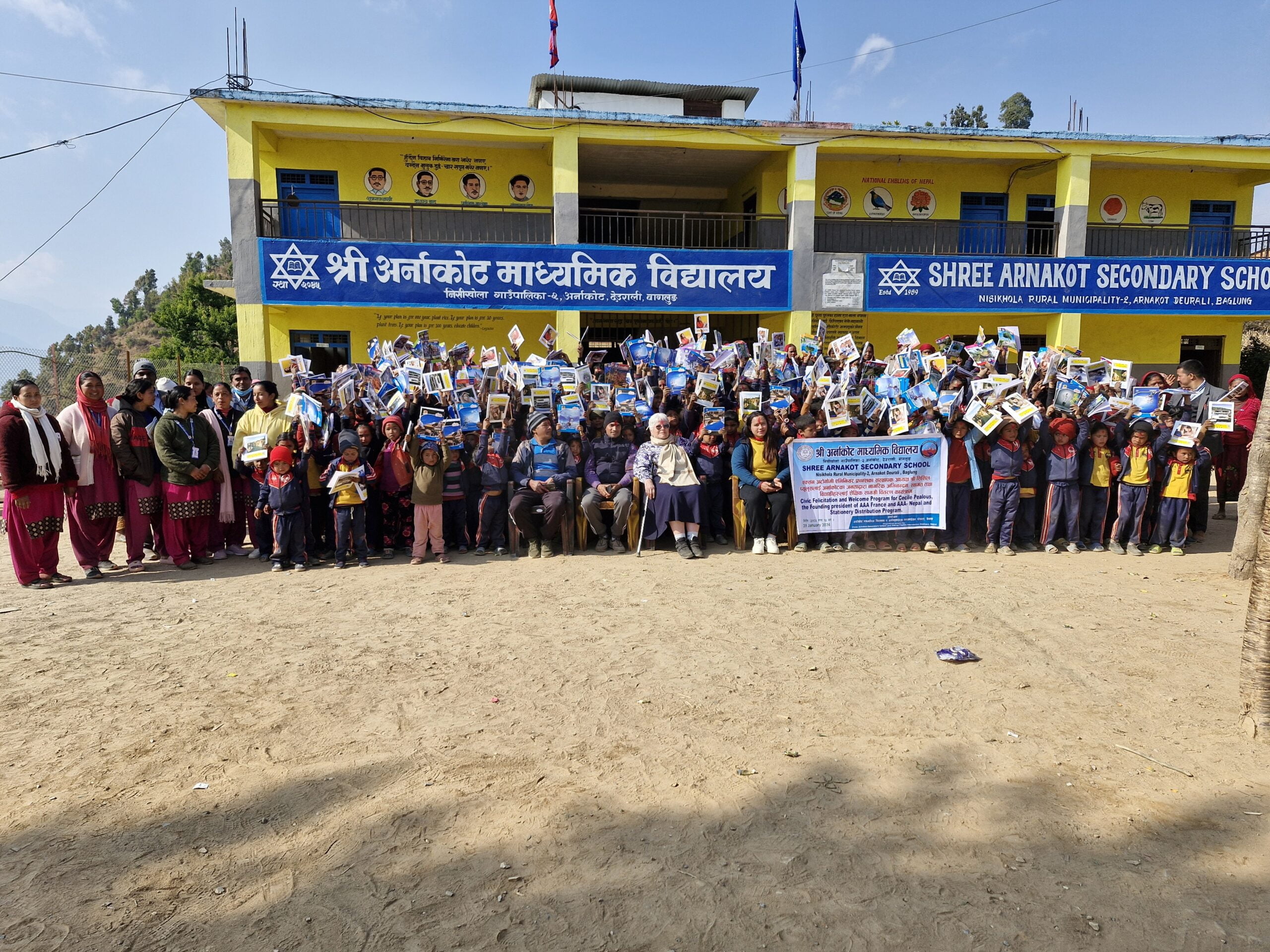 यसै गरि मिति २०८० /१० /१५  गतेका दिन श्री अर्नाकोट माध्यामिक बिद्यालयका वि.व्य.स. का अध्यक्ष राम बहादुर कुवर को अध्यक्षता मा   विद्यालय परिवारले कर्मफलाइटस पाउन्डेशन कास्की पोखराका  बिगत ९  वर्ष देखि यस विद्यालयलाई छात्रवृत्ति तथा सामुदायिक स्वास्थ्य इकाई मा  पुर्याउनु भएकोमा एक्सन अटोनोमी एभिनियर फ्रान्सका सस्थापक अध्यक्ष श्री सिसिल प्युलुसलाई एक कार्यक्रमका साथ श्री अर्नाकोट माध्यामिक विद्यालयका विद्यालय व्यबस्थापन समितिका पदाधिकारी, शिक्षक अभिभावक संघ समितिका पदाधिकारी, भुपु वि.व्य.स पदाधिकारी, भुपु शि.अ.स. का पदाधिकारी, विद्यार्थी, शिक्षक तथा सम्पुर्ण अर्नाकोटका अभिभावकद्वारा   नागरिक अभिनन्दन, स्वागत गरिएको थियो भने ३२९ जना  विद्यार्थीहरुलाई शैक्षिक सामग्री वितरण कार्यक्रम गरिएको थियो।