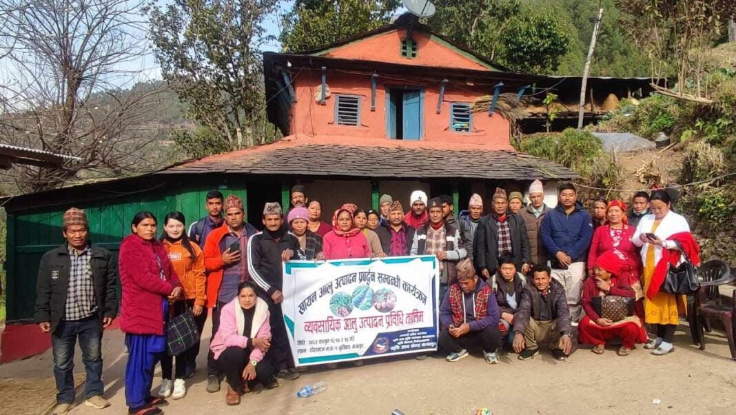 कृषि ज्ञान केन्द्र बागलुङको आयोजनामा बुर्तिबाङमा खयन आलु उत्पादन प्रबन्धन सम्बन्धी अभिभुखिकरण कार्यक्रम तथा व्यवसायिक आलु खेती प्रविधि तालिम मंगलबार सम्पन्न भएको छ ।