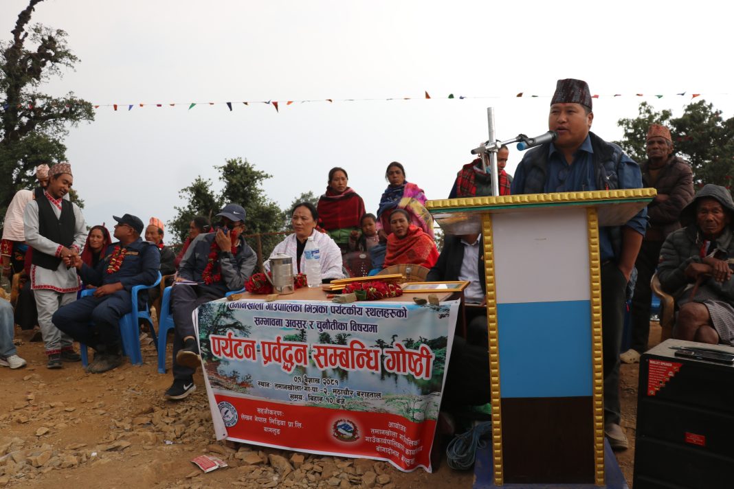 ‘स्थानीय सामग्रीहरुको उपयोग गरेर पर्यटकलाई यहाँ आएर हेर्दा आनन्द लाग्ने खालको संरचना बनाउने कुरामा हाम्रो ध्यान रहनेछ,’उनले भनिन्,‘सबैको साझा प्रयासबाट मात्रै पर्यटनबाट आर्थिक विकास गर्न सम्भव छ ।’ कार्यक्रममा तमानखोला गाउँपालिका—३ का अध्यक्ष झकबहादुर बुढाले पर्यटनबाट आम्दानी गर्न स्थानीयले विशेष ध्यान दिनुपर्नेमा जोड दिए ।