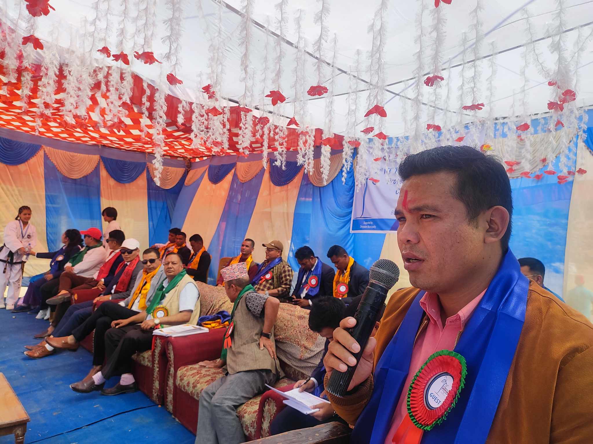 कार्यक्रममा विशिष्ट अतिथिको रुपमा रहनु भएका ढोरपाटन नगरपालिका कार्यवाहक मेयर धन बहादुर कायतले बोल्दै ढोरपाटन क्षेत्र खेलकुद क्षेत्रमा अगाडि रहेको र खेलकुद स्वास्थ्यका लागी र राष्ट्रका लागी महत्वपूर्ण गहना भएका कारण नगरपालिकाले खेलकुद क्षेत्रमा पर्याप्त लगानी गरिरहेको बताउनु भयो ।