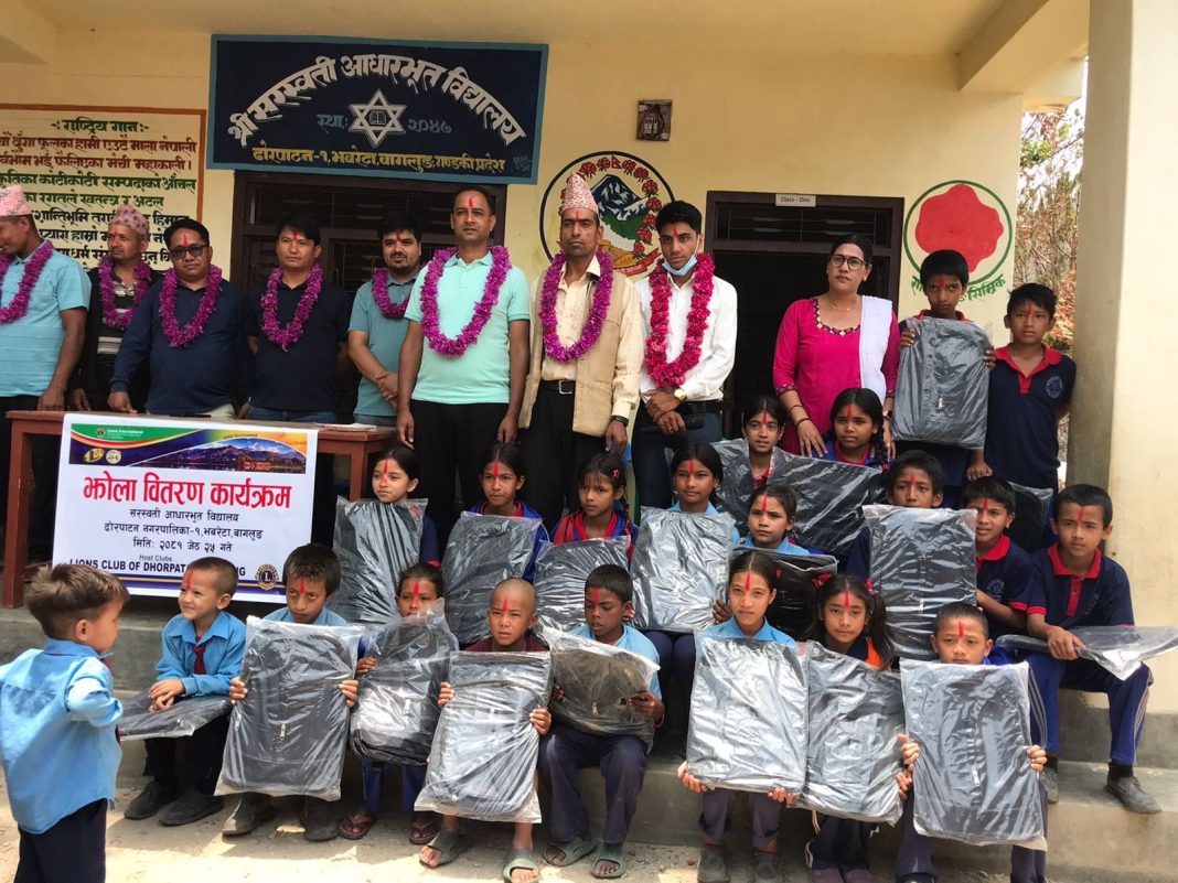 लायन्स क्लब अफ ढोरपाटन बुर्तिबाङले ढोरपाटन १ स्थित सरस्वती आधारभुत विद्यालयमा अध्ययनरत २० जना छात्र छात्रालाई झोला हस्तान्तरण गरेको छ ।