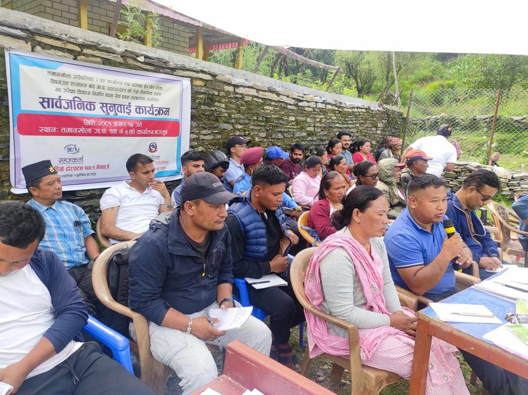 बागलुङको तमानखोला गाउँपालिकाको आयोजनामा शनिबार सार्वजनिक सुनुवाई कार्यक्रम वडा नम्बर ४ को लाम्मेलामा सम्पन्न भएको छ । प्रत्यक चौमासिकमा सार्वजनिक सुनुवाई गर्दे आएको पालिकाले आर्थिक बर्ष २०८०÷०८१ को तेश्रो चौमासिक सम्मको सार्वजनिक सुनुवाई गरेको हो ।