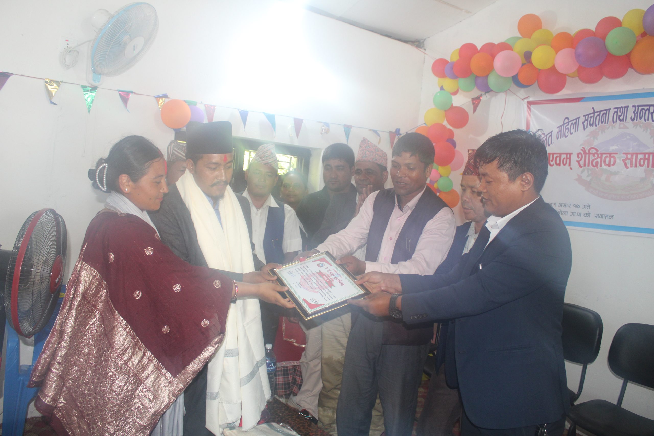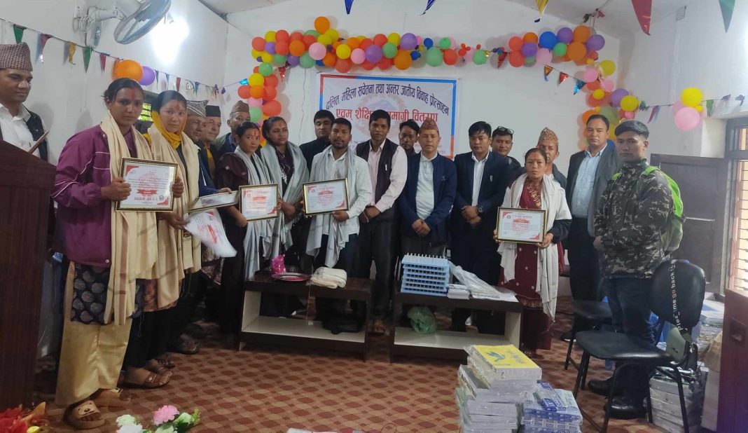 निसीखोला गाउँपालिका वडा नम्बर २ ले सोमबार एक कार्यक्रमका बिच अन्तर जातीय विवाह गर्ने जोडी र ७ वटा सामुदायिक विद्यालयका ४२ जना विद्यार्थीलाई स्टेसनरी सहित सम्मान गरेको छ ।