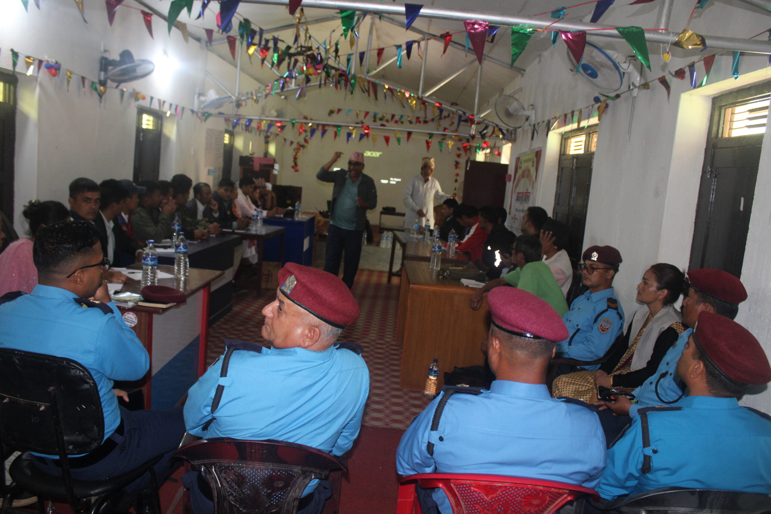 कार्यक्रममा प्रशिक्षक विजी घिमिरे, विराज सर्मा , इलाका प्रहरी कार्यालय बुर्तिबाङका प्रमुख प्रहरी निरीक्षक राजकुमार बिक लगायतको मन्तव्य रहेको थियो ।