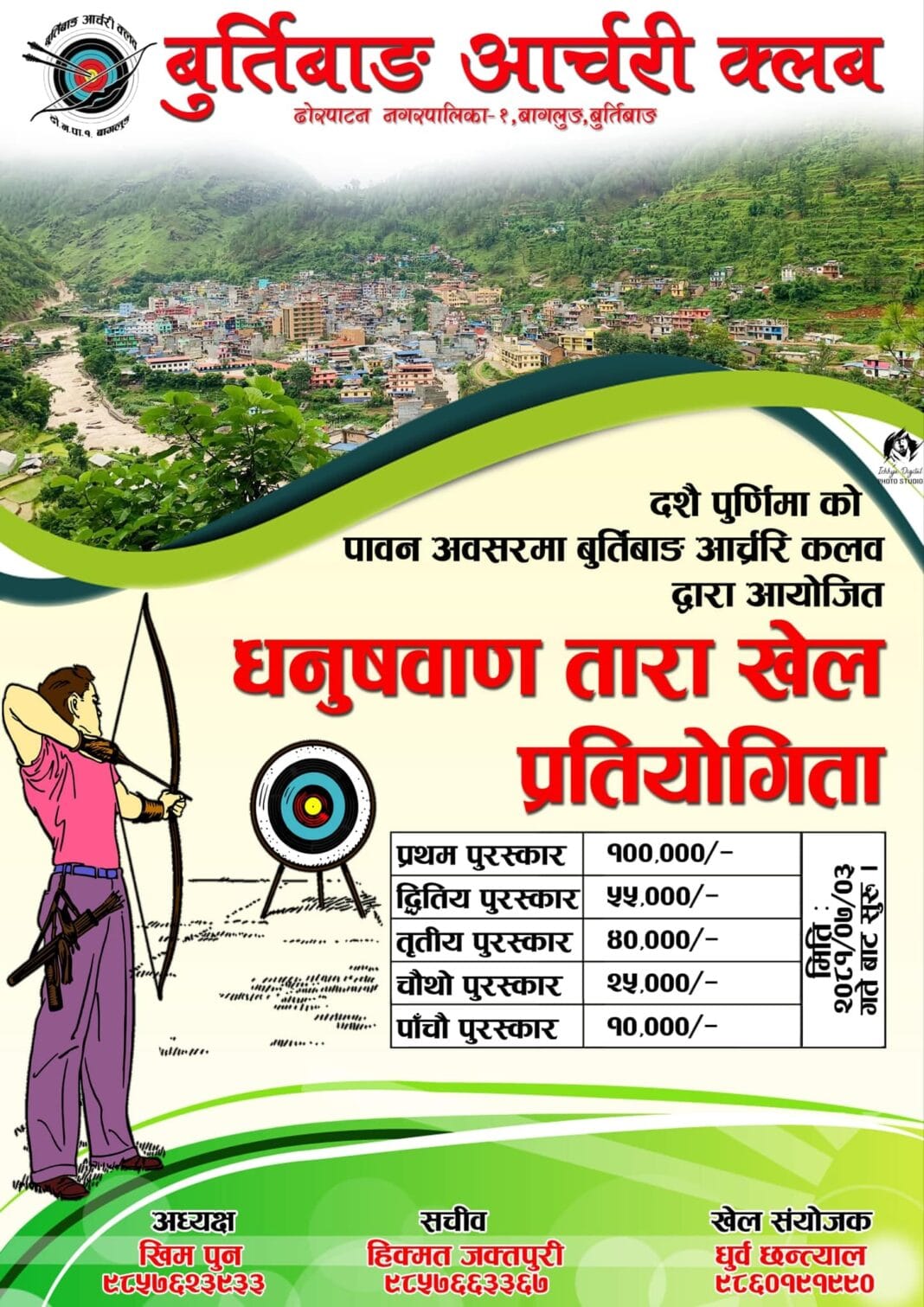 बुर्तिबाङ आर्चरी क्लबको आयोजनामा कोजाग्रत पूर्णिमाको अवसरमा धनुषवाण ताराखेल प्रतियोगिता सञ्चालन हुने भएको छ ।