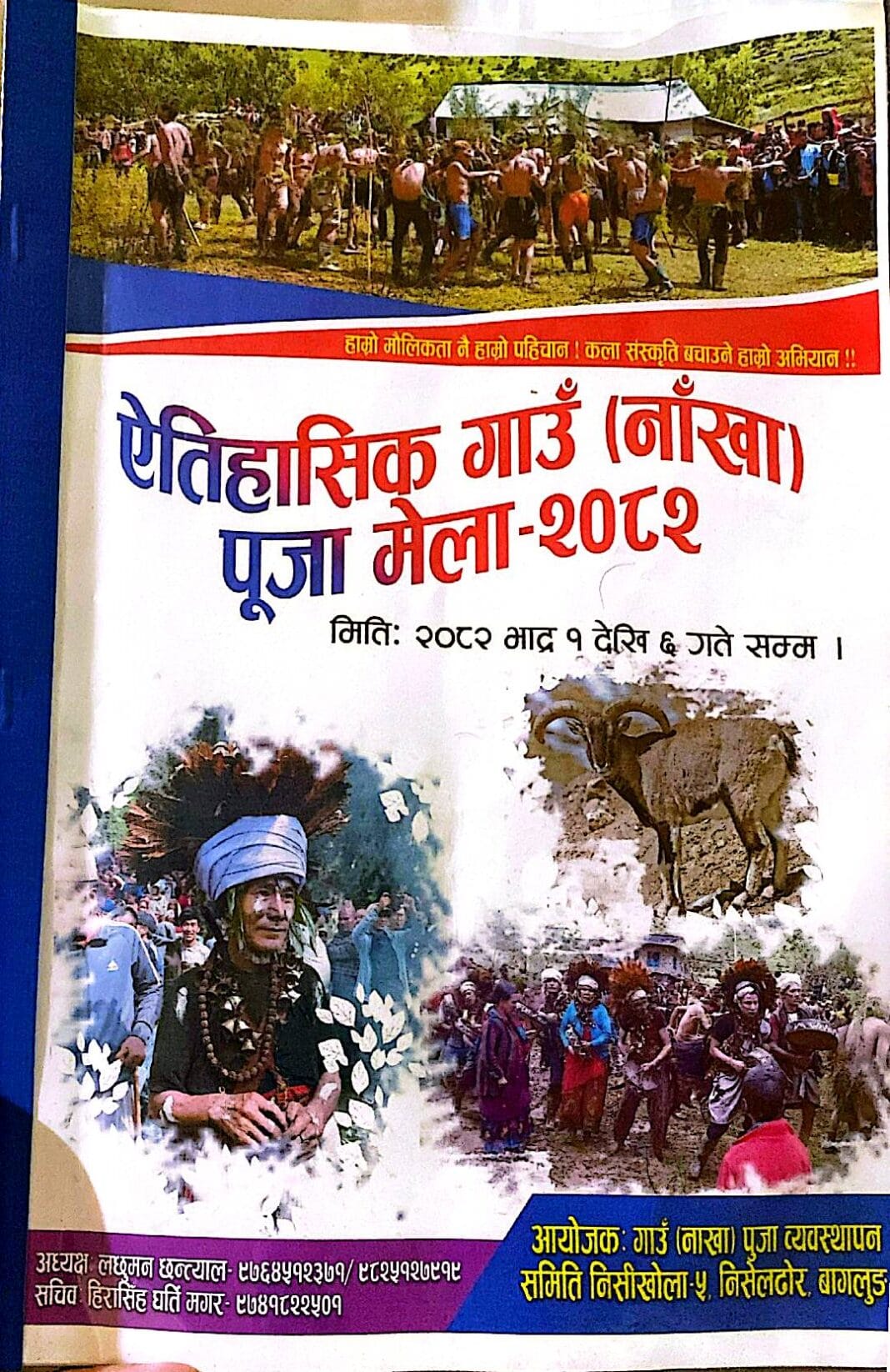 “हाम्रो मौलिकता नै हाम्रो पहिचान, कला संस्कति बचाउने हाम्रो अभियान” भन्ने मूल नाराका साथ यहि भदौ १ गतेबाट भूमे पुजाको अवसरमा ऐतिहासिक गाउँ (नाँखा) पुजा मेला २०८२ सञ्चालन हुने भएको छ । निसीखोला गाउँपालिका वडा नं. ५ को ऐतिहासिक पर्यटकीय स्थल निसेलढोरमा गाउँ (नाखा) पुजा व्यवस्थापन समिति, निसीखोला गाउँपालिका ५, निसेलढोरद्वारा यहि भदौ १ गते देखि ६ गतेसम्म विभिन्न खेलकुद तथा सांस्कृतिक कार्यक्रमको आयोजना गरिएको समितिका सचिव हिरासिंह घर्ति मगरले बताउनुभयो ।
