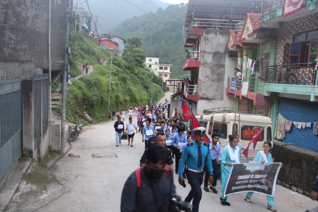 इन्जिनीयर थम प्रकाश खनालको नेतृत्वमा सुरु भएको आन्दोलन बुर्तिबाङ देवचोकबाट सुरु भई ढोरपाटन नगरपालिकाको कार्यालय हुँदै बुर्तिबाङ बजार परिक्रमा गर्दे सम्पन्न गरिएको हो ।