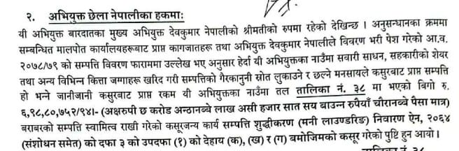 बागलुङको जिल्ला सरकारी वकिलको कार्यालयले नेपाली विरुद्ध रु.एक अर्ब ५८ करोड विगो मागदावी सहित मुद्दा दायर गरेको हो । उनीमाथि बागलुङको इमेज सहकारी संस्थाको रकम हिनामिना गरी गैरकानूनी सम्पत्ति कमाएको आरोप छ । यस्तै उहाँकी श्रमती छेला नेपाली बिरुद्ध रु. ६ करोड ९८ लाख विगो मागदावी मुद्दा दर्ता गरिएको हो ।
