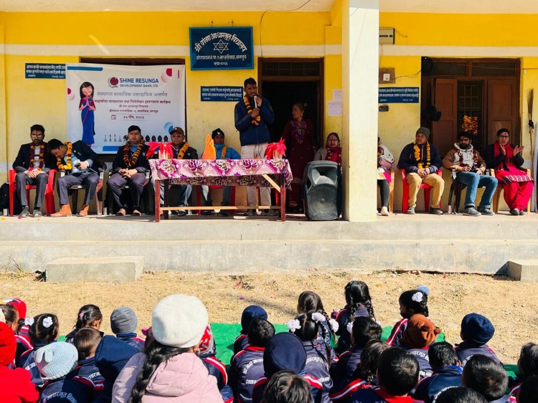 बैँकको आर्थिक सहयोगमा भित्ते लेखन गरिएपछि एक कार्यक्रमका विच विद्यालयलाई हस्तान्तरण गरिएको हो । विद्यालय व्यवस्थापन समिति अध्यक्ष तेज बहादुर कुमालको अध्यक्षतामा आयोजित कार्यक्रममा ढोरपाटन नगरपालिका १ का अध्यक्ष वान बहादुर छन्त्यालको प्रमुख आतिथ्यता रहेको थियो ।